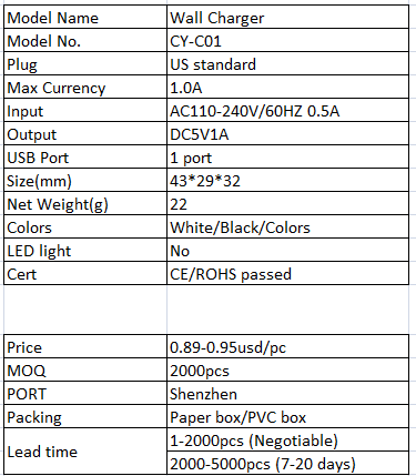 | 1-port USB wall charger for charging one device at a time—great for phones, tablets, and other devices | |||||||||||